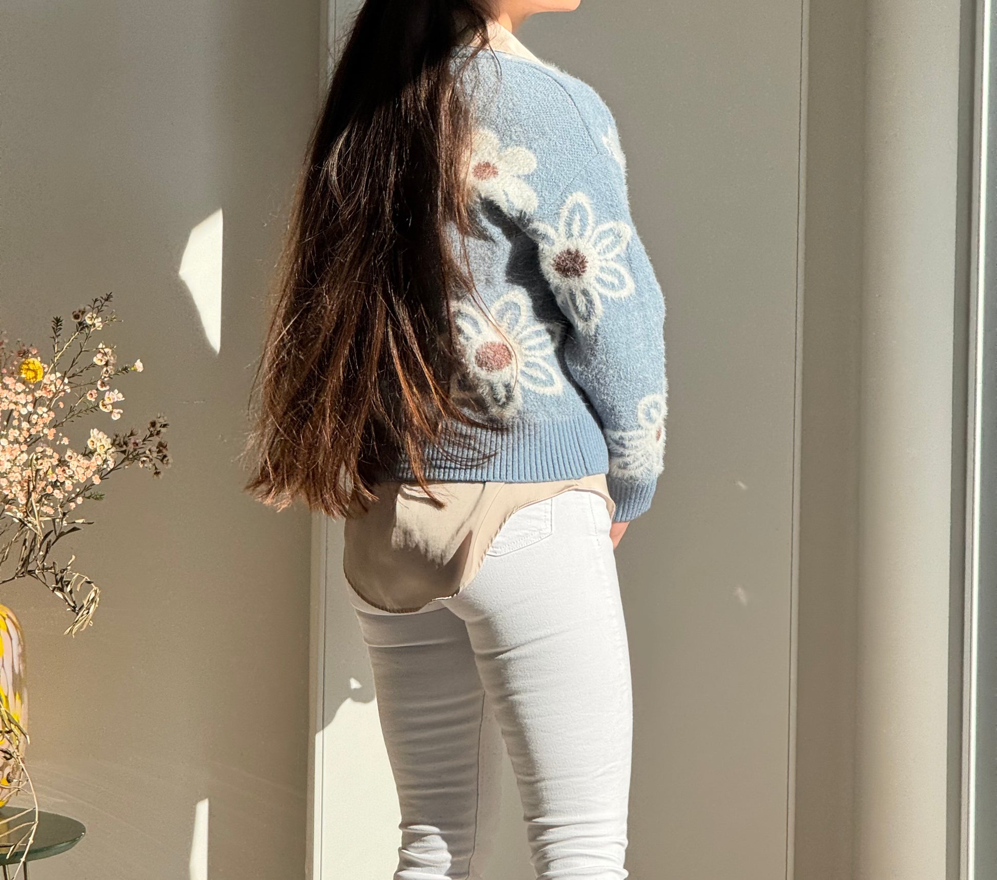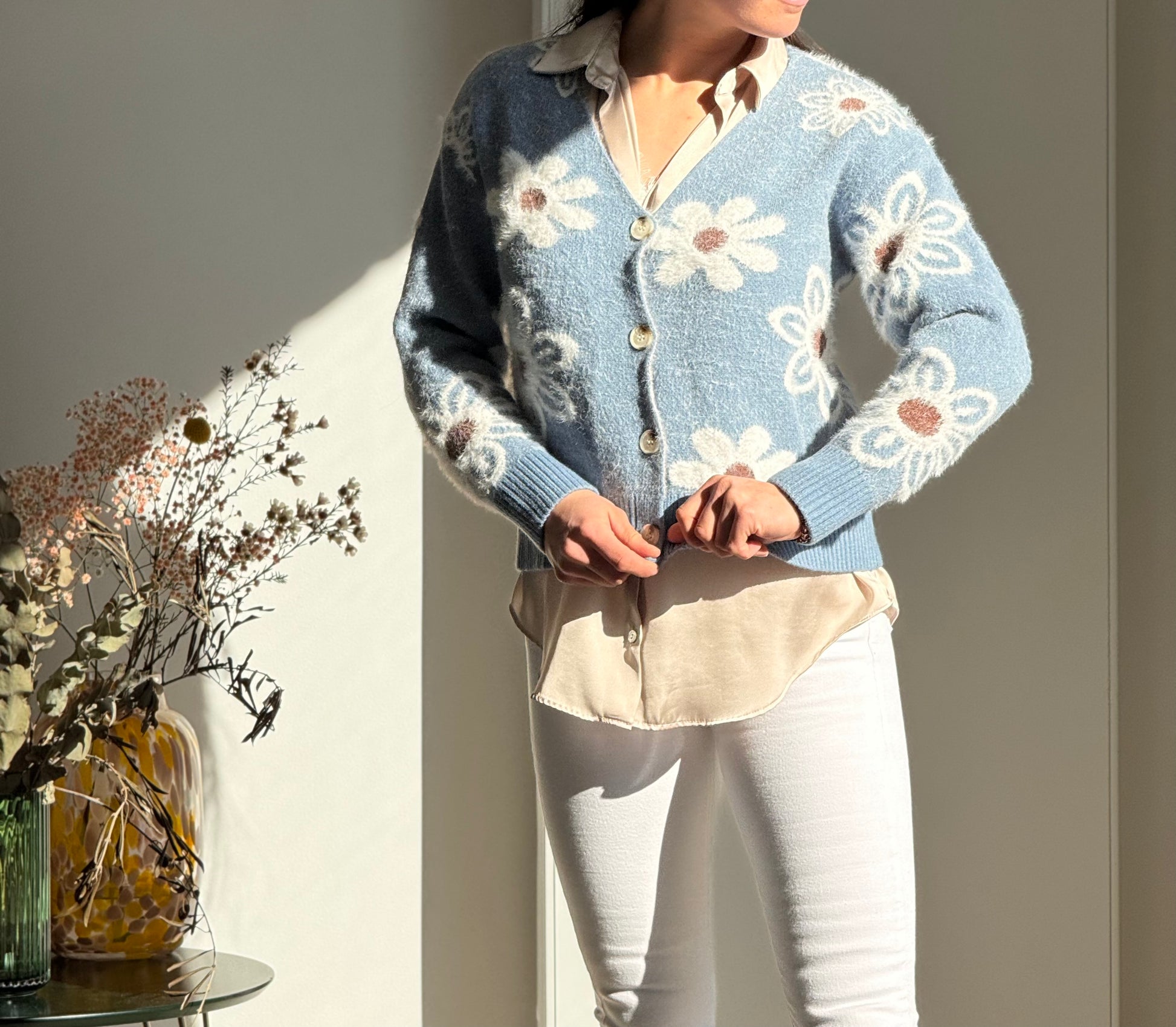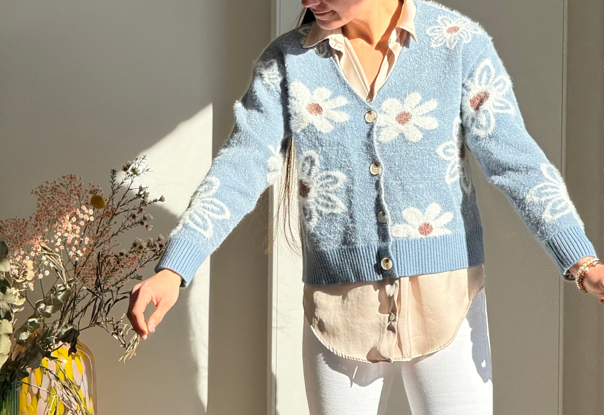 Die Primavera Strickjacke ist die perfekte Begleiterin für die ersten sonnigen Frühlingstage. Ihr zarter, floraler Print bringt die Leichtigkeit der Saison direkt in deinen Kleiderschrank und verleiht deinem Look eine frische, verspielte Note. Die Strickjacke ist ideal für Übergangszeiten oder einen gemütlichen Abendspaziergang.